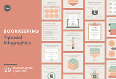 Want a hassle-free way to promote your Bookkeeping services to your followers that won’t cost you the earth or require an expensive designer either? Why not make use of my Bookkeeping Social Media Infographics Canva Templates and maximize the growth of your business from the moment you download. Sounds too good to be true Girl? Well, that’s because it ISN’T! My templates have been professionally optimized with 100% customizable design features and are complete with usable real text. Why should promoting your services take you away from the parts of your business that you love best?… It shouldn't and with my templates, you can easily reclaim your precious time whilst building trust with your audience in the process. This template pack has been expertly formulated for Savvy Bookkeepers like you and contains graphics that will help you dispel bookkeeping myths, highlight the importance of bookkeeping, and is sure to set you apart from the rest through original and engaging content. Show up as an industry authority by downloading my Bookkeeping Social Media Infographic Templates now and watch your conversions soar!